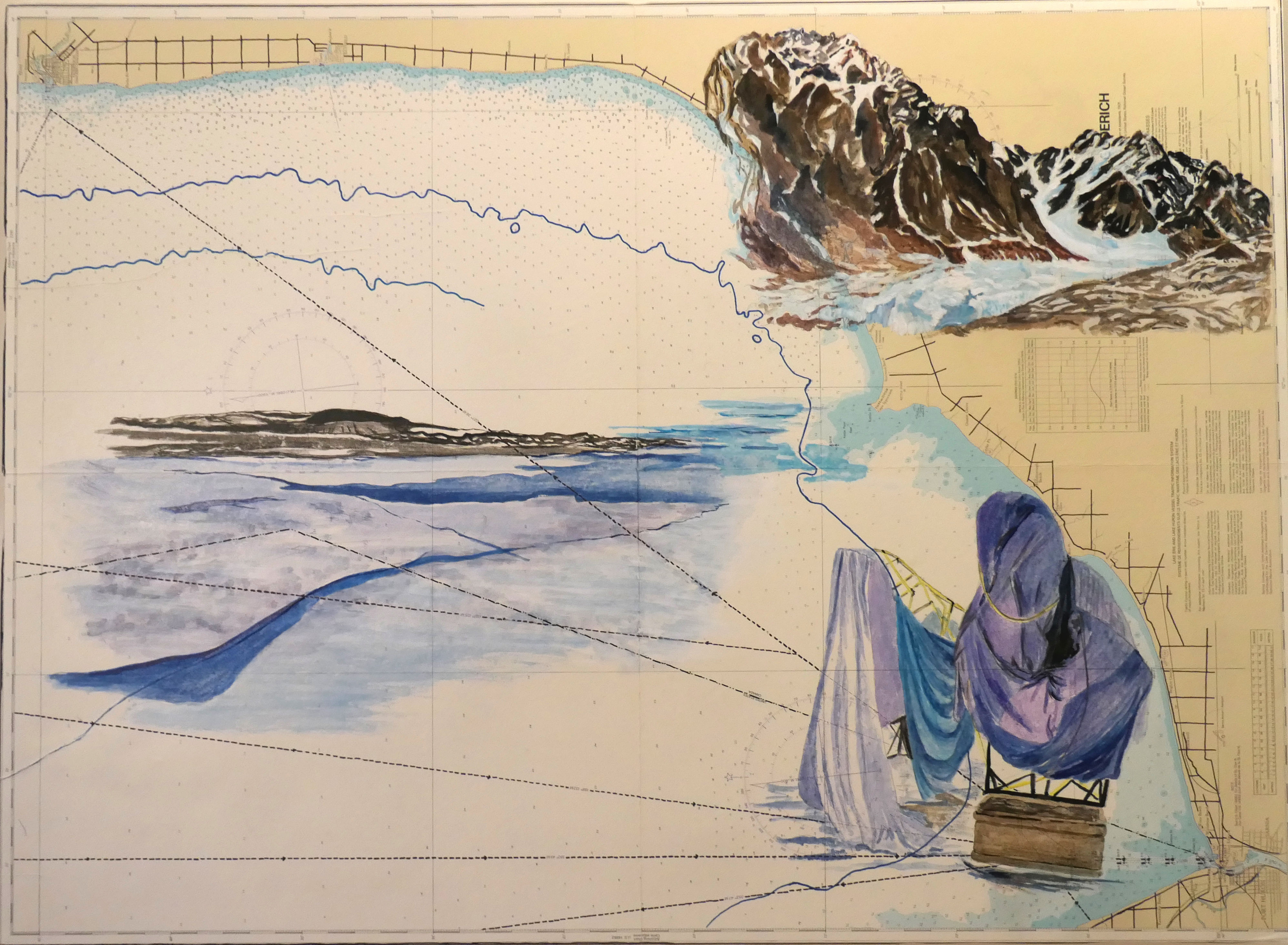 As promised in 2019, I am creating the Arctic Circle Expedition – “Sailing The Top of The World” book inspired by positive response to my presentations by the same name. Once again, I want to express my gratitude for your support to my multi media art research and production. The figurative abstract artworks created in 2020 and previous abstract expressionist paintings are conceptually consistent in their aesthetic concerns for fluidity of identity, memory, loss and uncertainty. Artwork below: Artist: Sandra Hawkins. Title: St Clair River to Godrich – Lake Huron, liquid acrylic on nautical chart, 2020