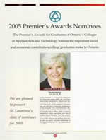 - Ontario Visual Arts Premier’s Award Nominee, St. Lawrence College 2005