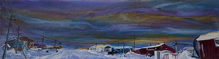 Acrylic on stretched gallery canvas, 12\”h x 24\”w.