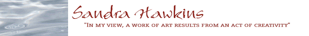 ©2013 Sandra Hawkins. All images of visual and media artworks, articles and poetry by the artist shown on this site are fully protected by copyright law. They are not to be exhibited, reproduced, displayed in any digital format, or placed on any website without the express written authorization of Sandra Hawkins.